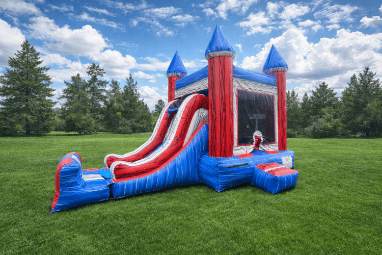 Setup and takedown are relatively straightforward compared with larger inflatables: it inflates quickly with a single blower, anchors securely with stakes or sandbags, and packs down compactly for transport. Regular cleaning and inspections between uses help maintain its bright look and safe condition. Ideal when you want the excitement of a slide plus a bouncing area without needing a lot of space, this marble mini combo delivers active play, easy supervision, and dependable fun.